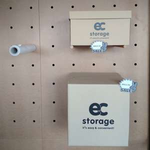 Boxes, stretch film, box cutter, padlock, and packaging tape are available for purchase