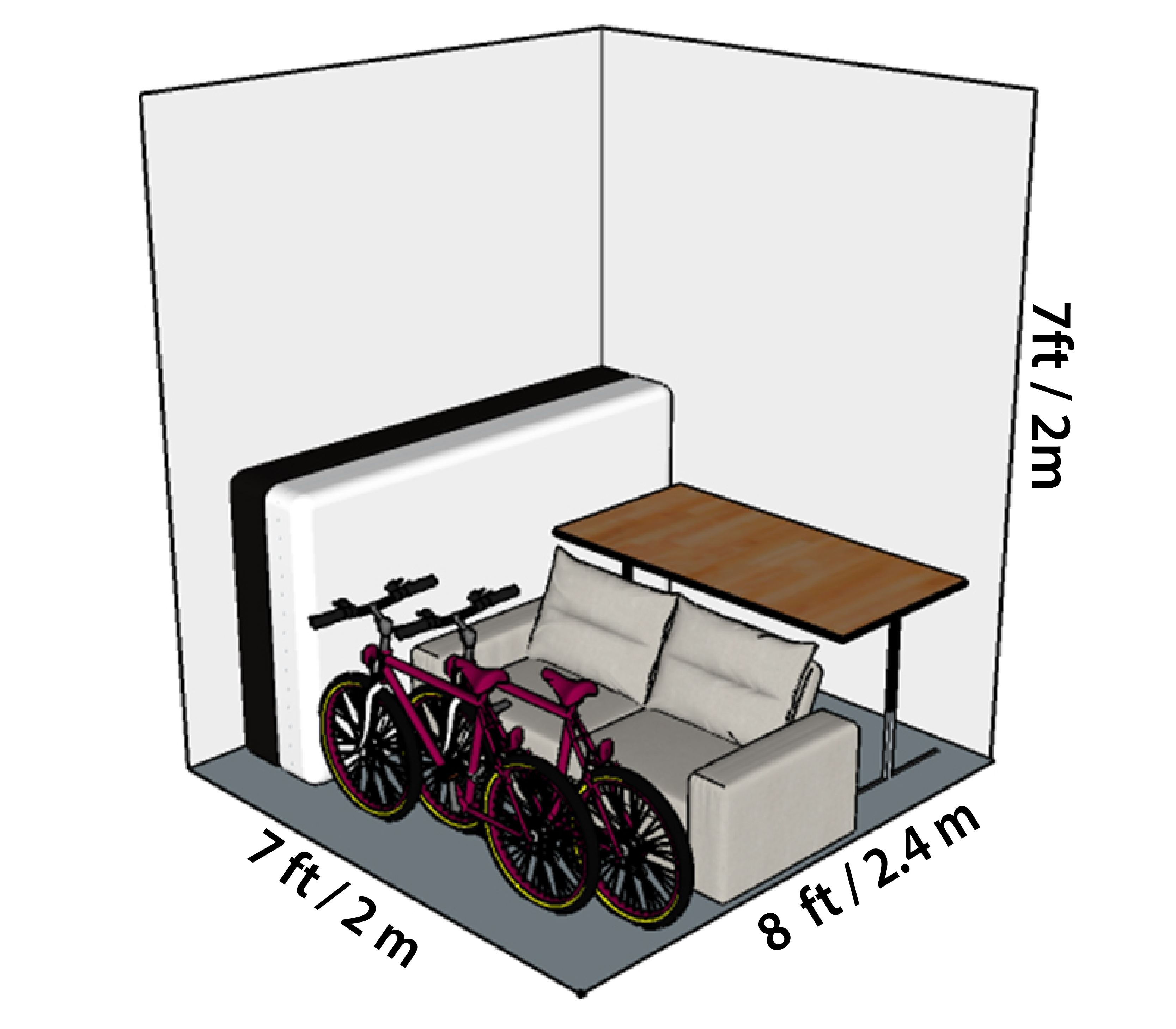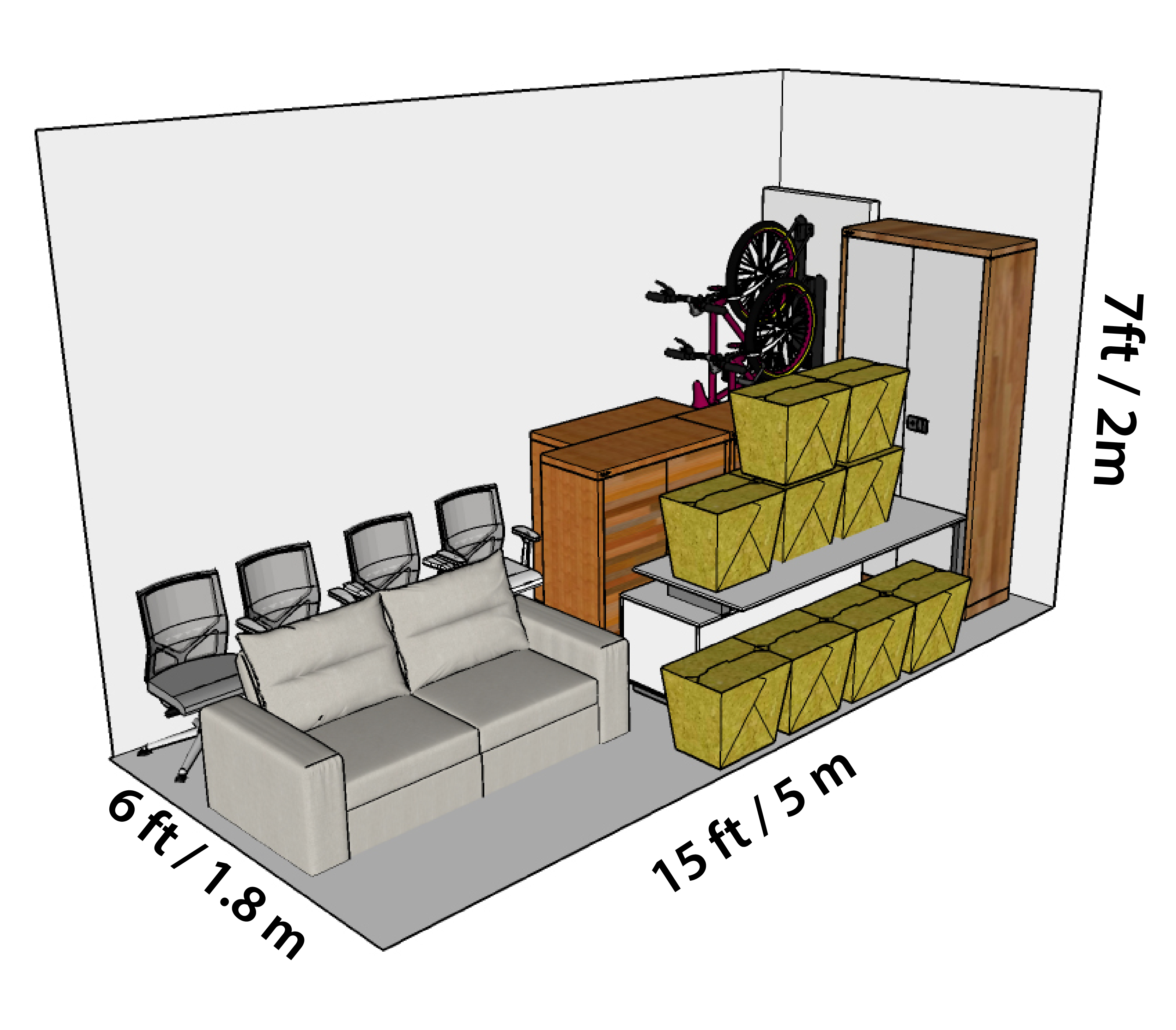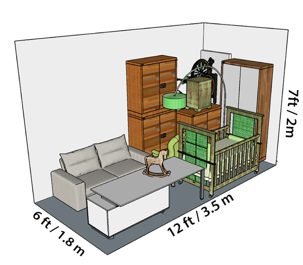 We offer storage units of various sizes to satisfy your needs.Below are references for the items that can fit into the storage according to sizes. All sizes with height 8.6 ft (2.7 m). The smallest unit is 13 sq ft locker storage and the largest unit is 191 sq ft.